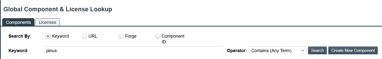 1. Open the Global Component & License Lookup tab, using the instructions in Accessing the Global Component & License Lookup Feature.