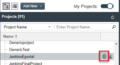 - (Optional) Click the My Projects toggle at the top of the list to show only those projects with which you are associated as Project Contact or through a project role. (For details, see Showing Only Your Projects.) You can also search projects by name, inventory, or security vulnerability as described in Searching Across All Projects in Code Insight.