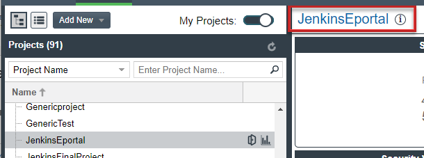 - Click the project name (in the example, JenkinsEportal) in the title bar of the right panel: